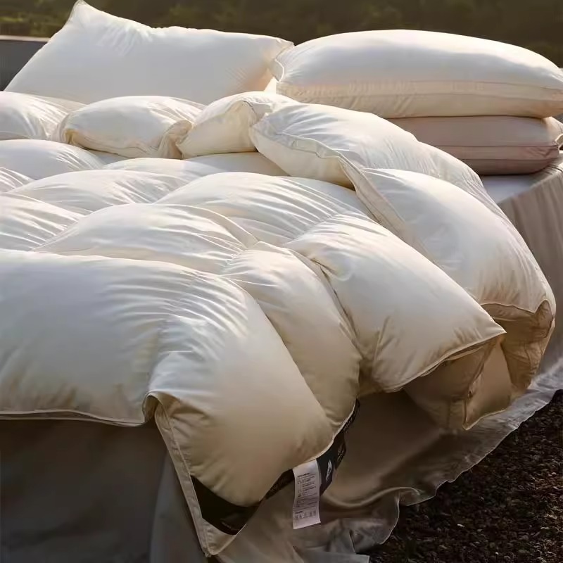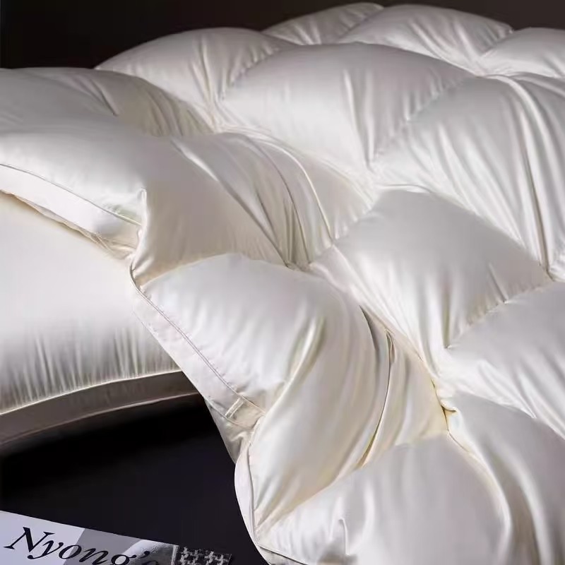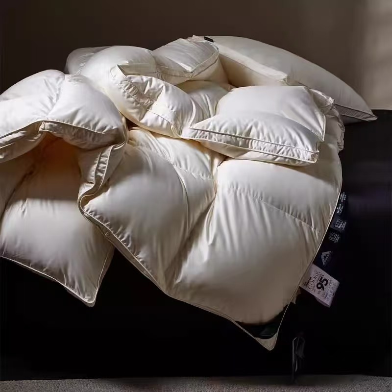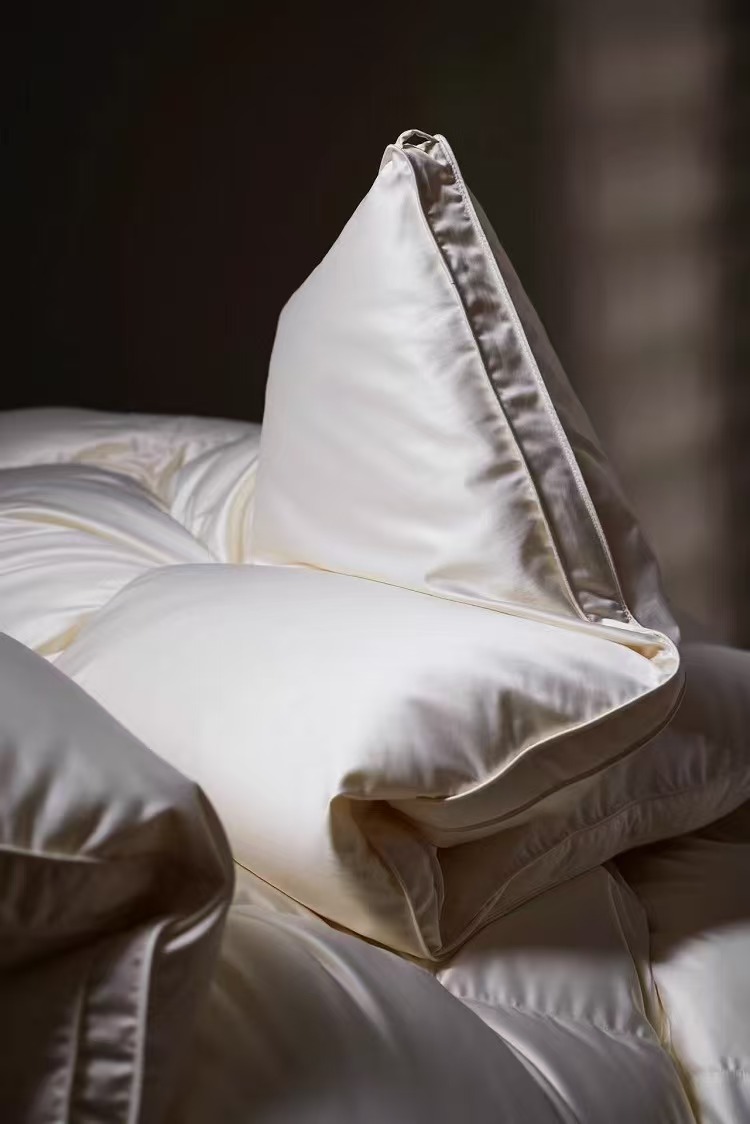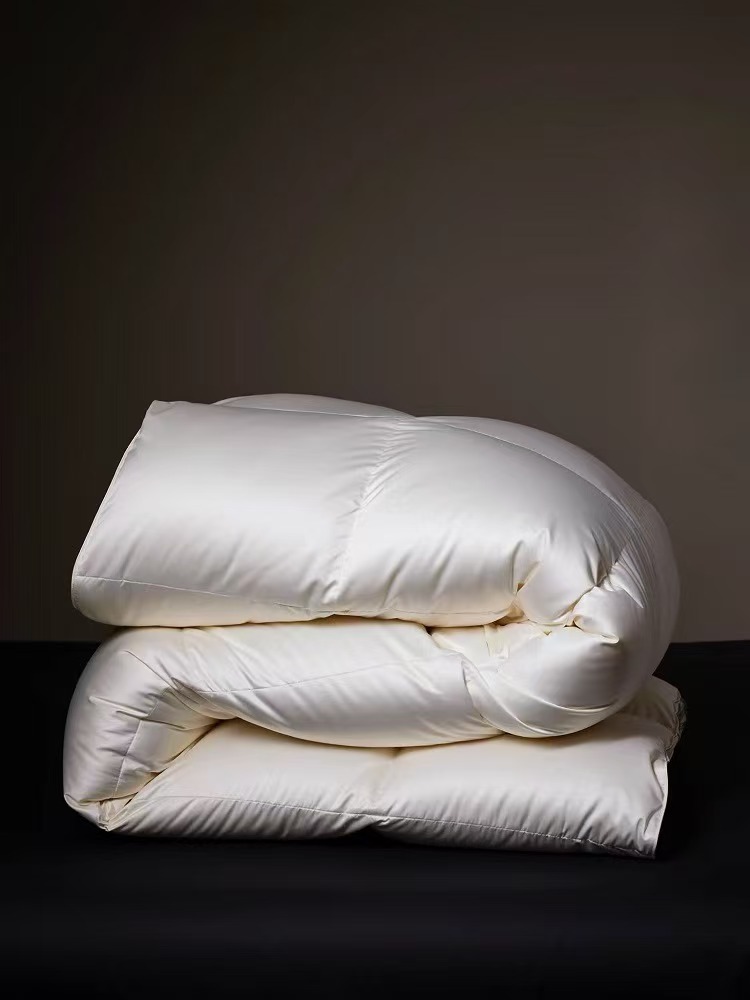Each RoyalDown duvet undergoes a multi-stage cleaning process with a clarity rating over 1000 mm, ensuring it is free from dust, allergens, and residues, making it ideal for those seeking pure and hygienic sleep comfort. The outer casing features a premium dual-layer ultra-fine woven fiber, with an inner layer of 100% polyester and an outer surface of 95% Modal and 5% silk, providing a silky texture, excellent breathability, and a soft touch against the skin.