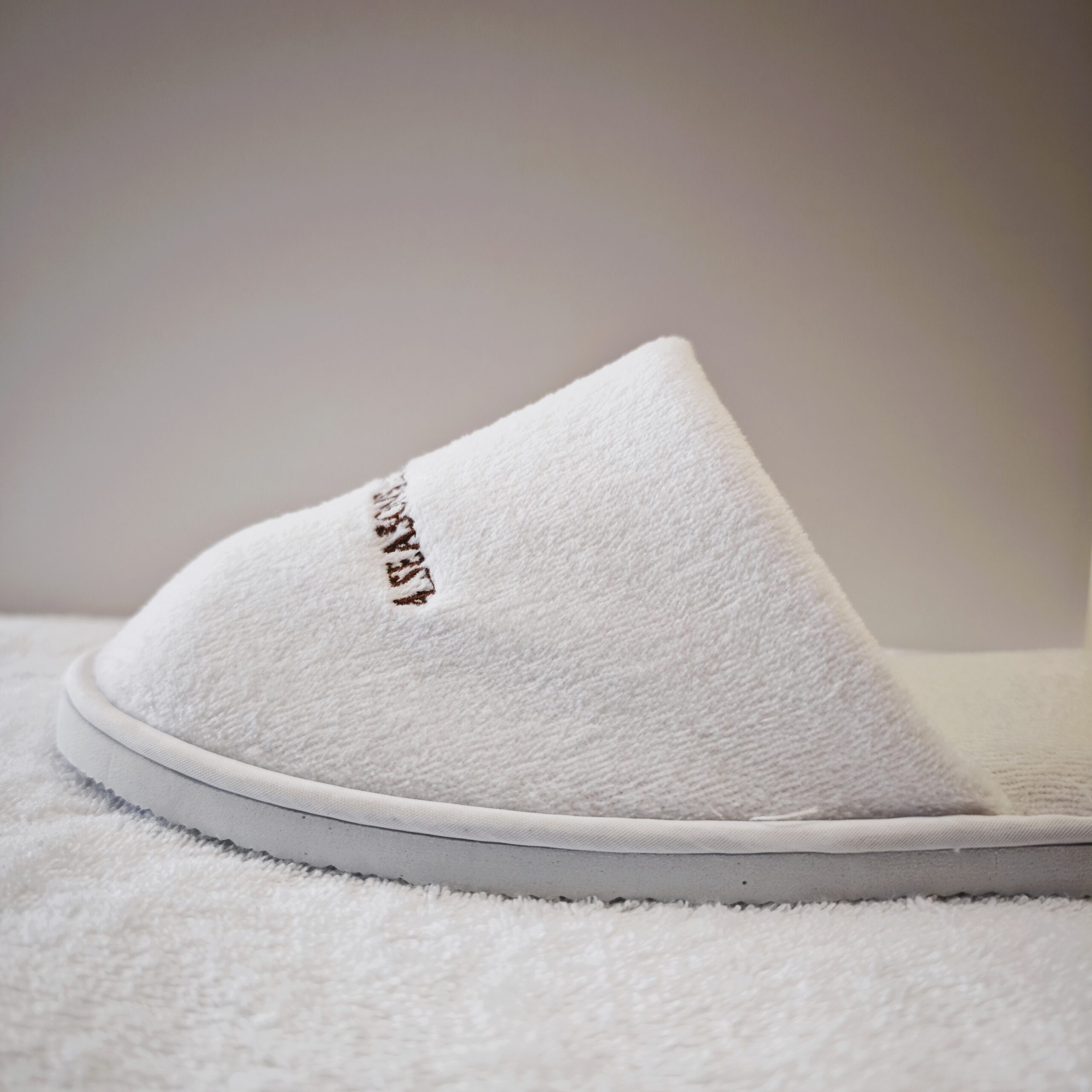 Μονόχρωμες κλειστές βελουτέ παντόφλες ξενοδοχείου με μαλακό, άνετο και αντιολισθητικό πάτο 8mm.