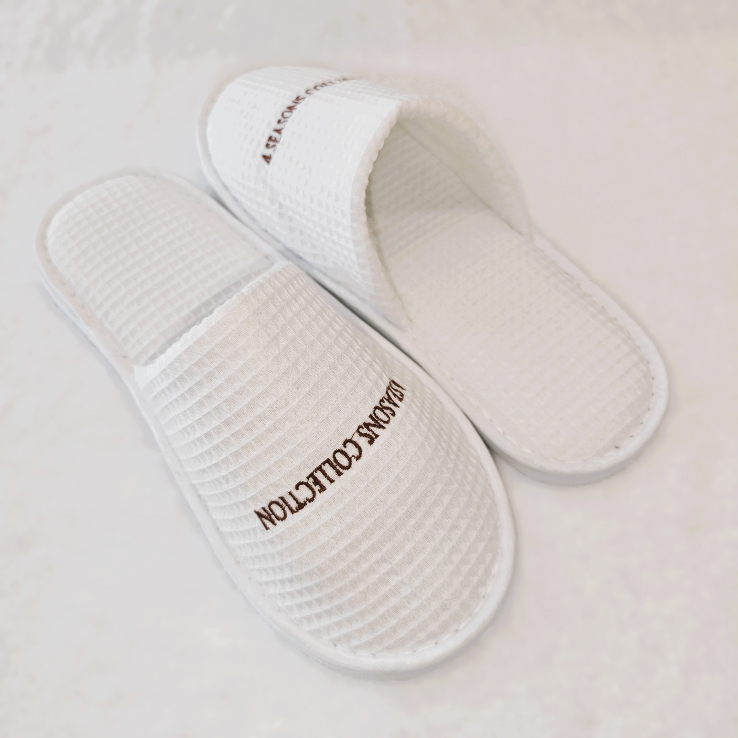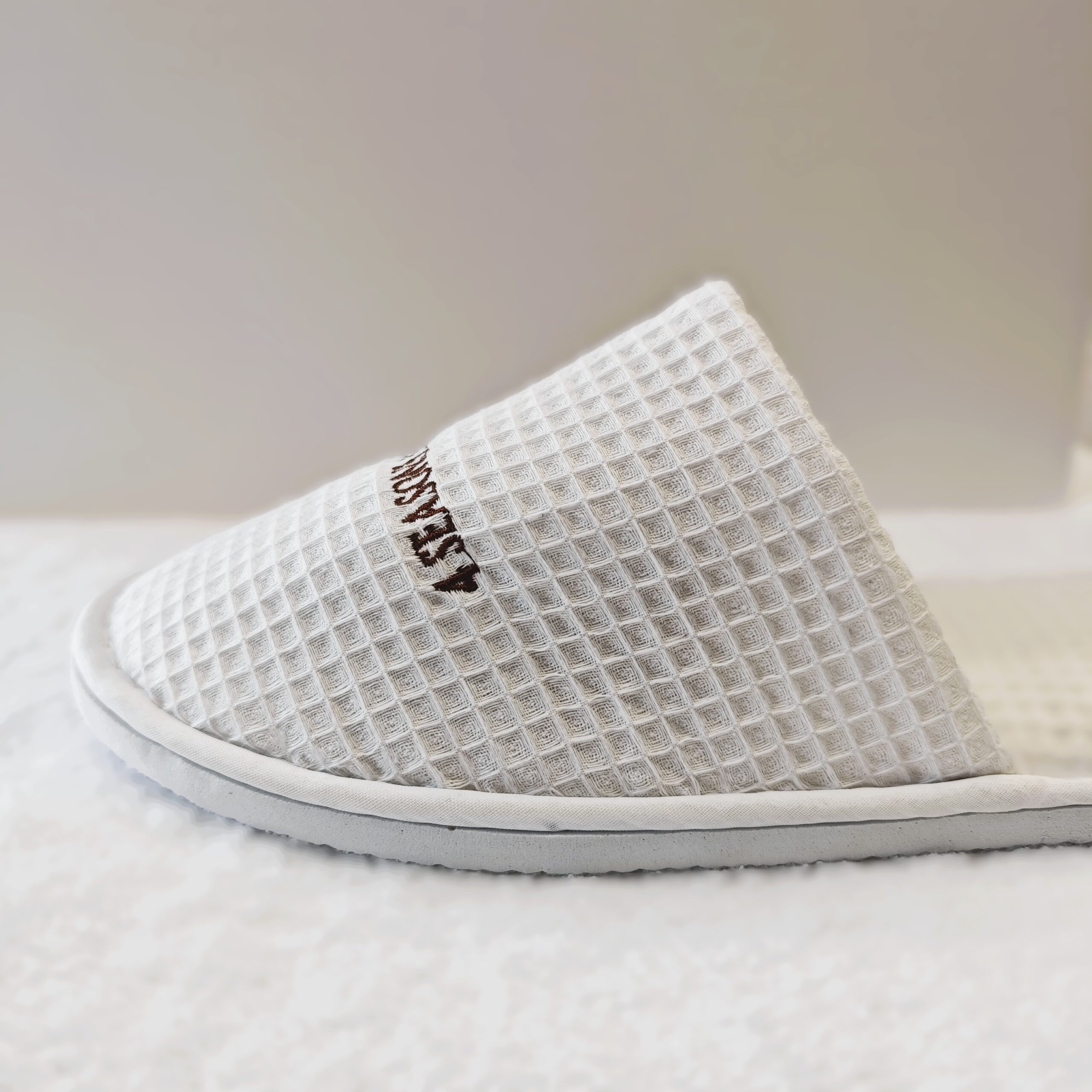 Μονόχρωμες κλειστές πικέ παντόφλες ξενοδοχείου με μαλακό, άνετο και αντιολισθητικό πάτο 8mm.